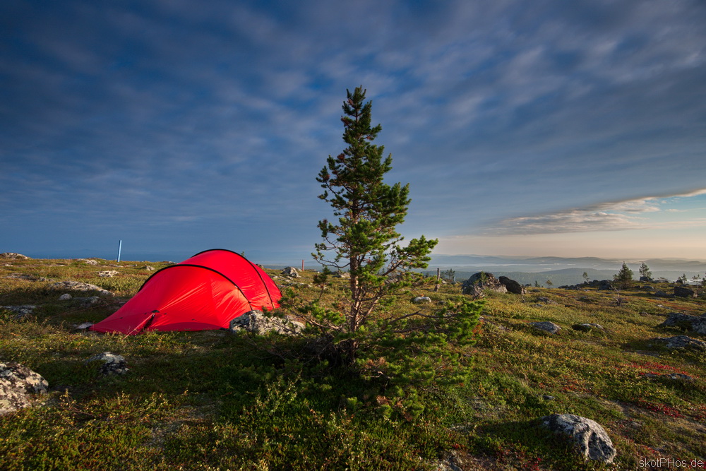 Unser heutiges Ziel ist der Otsamo, ein Aussichtsberg oberhalb von Inari. Wir wollen die Nacht dort oben verbringen und so packen wir unsere Rucksäcke und steigen am Mittag auf den Berg. Wir werden mit einer grandiosen Sicht auf den Inari See und einem tollen Sonnenuntergang von einer kalten und stürmischen Nacht entschädigt.
